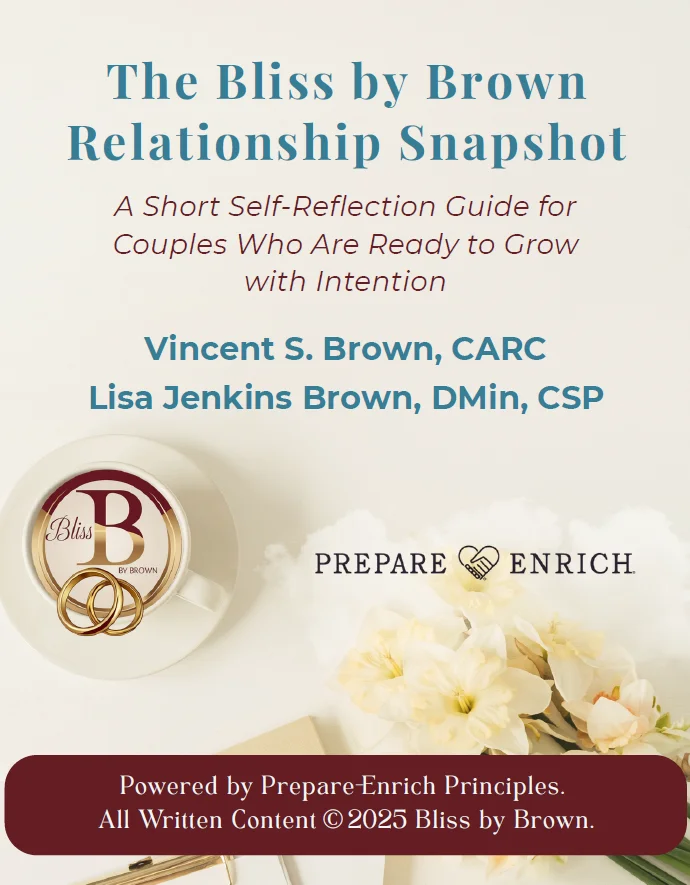 Healthy relationships are built, not assumed. The Bliss by Brown Relationship Snapshot helps you and your partner step back, reflect, and name what is working well and where you want to grow. It is a simple, private way to start a deeper conversation before engagement, before marriage, or before patterns set in that are harder to change.
